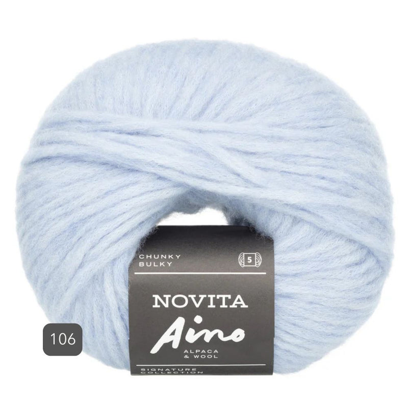 Hurmaava Novita Aino on täydellinen lanka neulojalle, joka haluaa puikoilleen käytännöllistä kauneutta. Blow wool -tekniikalla valmistettu ihana neulelanka sisältää 55 % unelmanpehmeää baby-alpakkaa, 23 % laadukasta merinovillaa sekä 22 % kierrätettyä polyamidia. Novita Aino -lanka valmistetaan puhaltamalla läpinäkyvään polyamidiverkkoon alpakan ja merinovillan sekoitetta, jolloin kuohkea neulelanka säilyy paksuudestaan huolimatta ihanan keveänä. Novita Aino sopii erinomaisesti näyttäviin pitsi- ja palmikkoneuleisiin sekä arkkitehtonisen tyylikkäisiin neulevaatteisiin ja asusteisiin sileästä neuleesta. Lanka sopii kaikkiin kansainvälisiin ohjeisiin, joissa on käytetty chunky-vahvuista lankaa.
