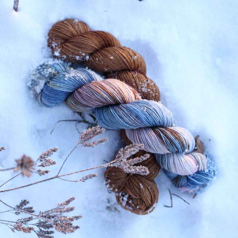 Tänä vuonna palaamme Aaran alkujuurille, ammennamme ympäröivästä maailmasta sekä lankasävyistä, jotka ovat kulkeneet kanssamme jo kappaleen matkaa. Mielenmaisema tekee paluun! Kuukausittaisen Mielenmaisema-sävyn lisäksi olemme poimineet värikartaltamme kyseiselle sävylle meidän mielestä erityisen kauniisti sopivan kumppanin.
